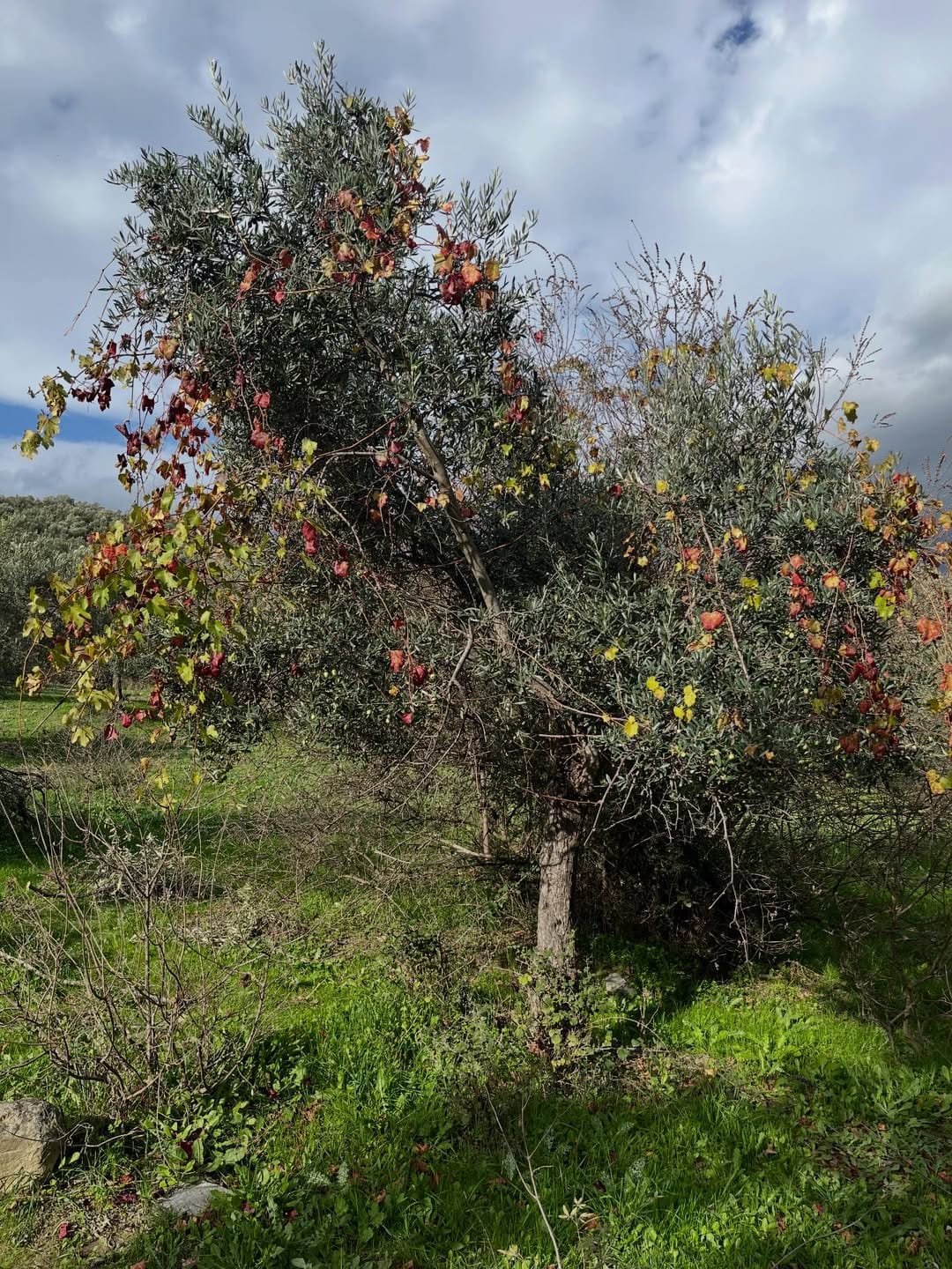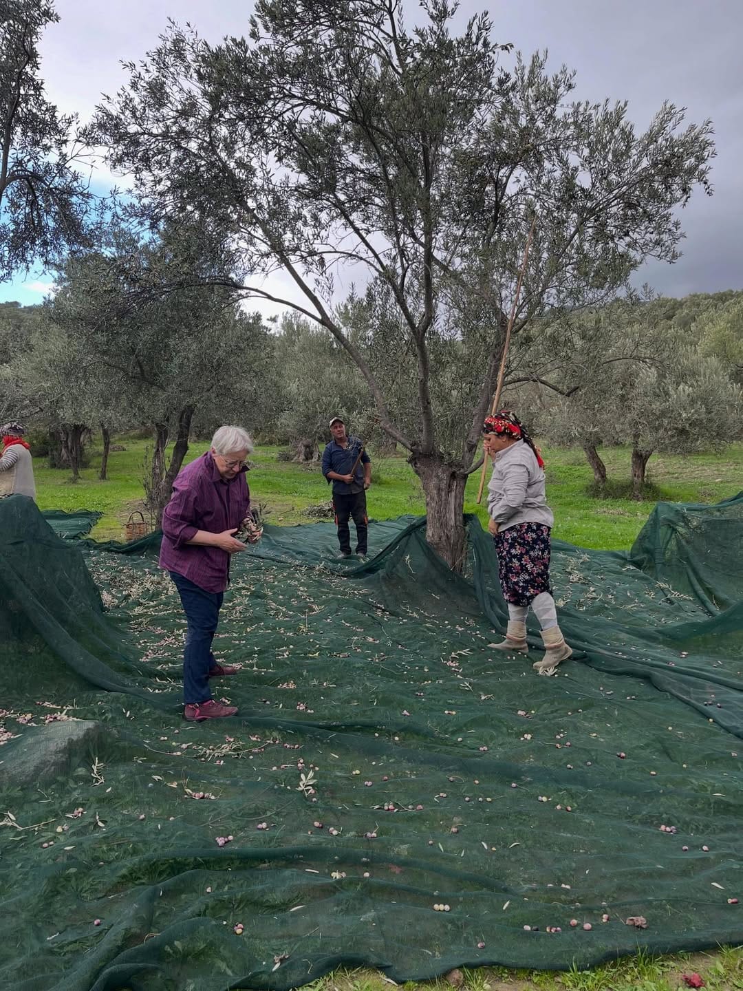 İki gün önce nihayet zeytin hasadımıza başlayabildik ama Pazartesi ‘ye kadar sürecek yağmur ve fırtınadan dolayı tekrar ara vermek zorunda kaldık.